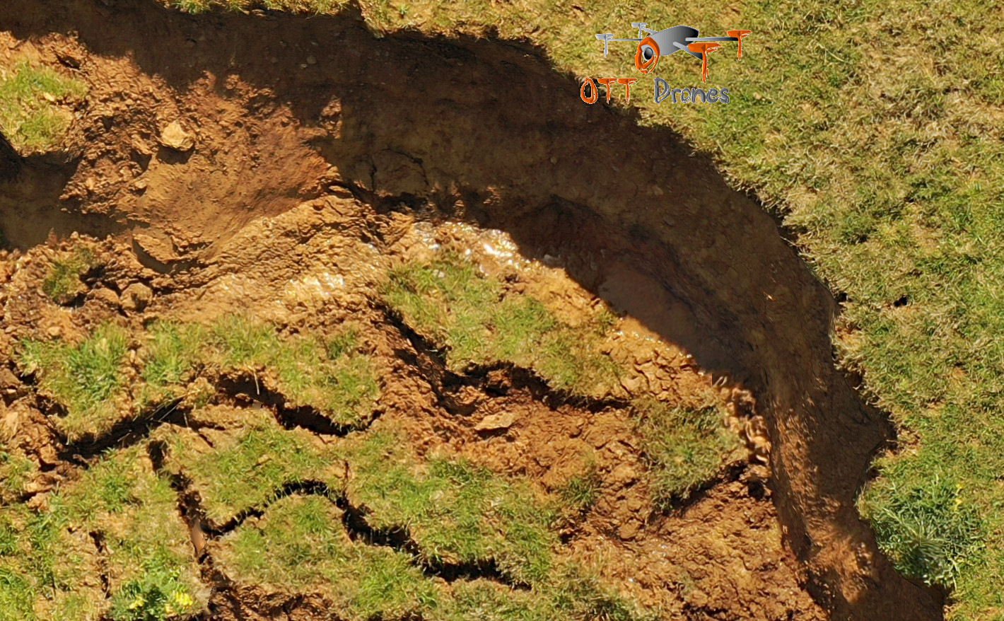 Cropped orthophoto, showing details such as water seepage at the top end of the slump, click image for an animated fly-over of the 3D model